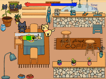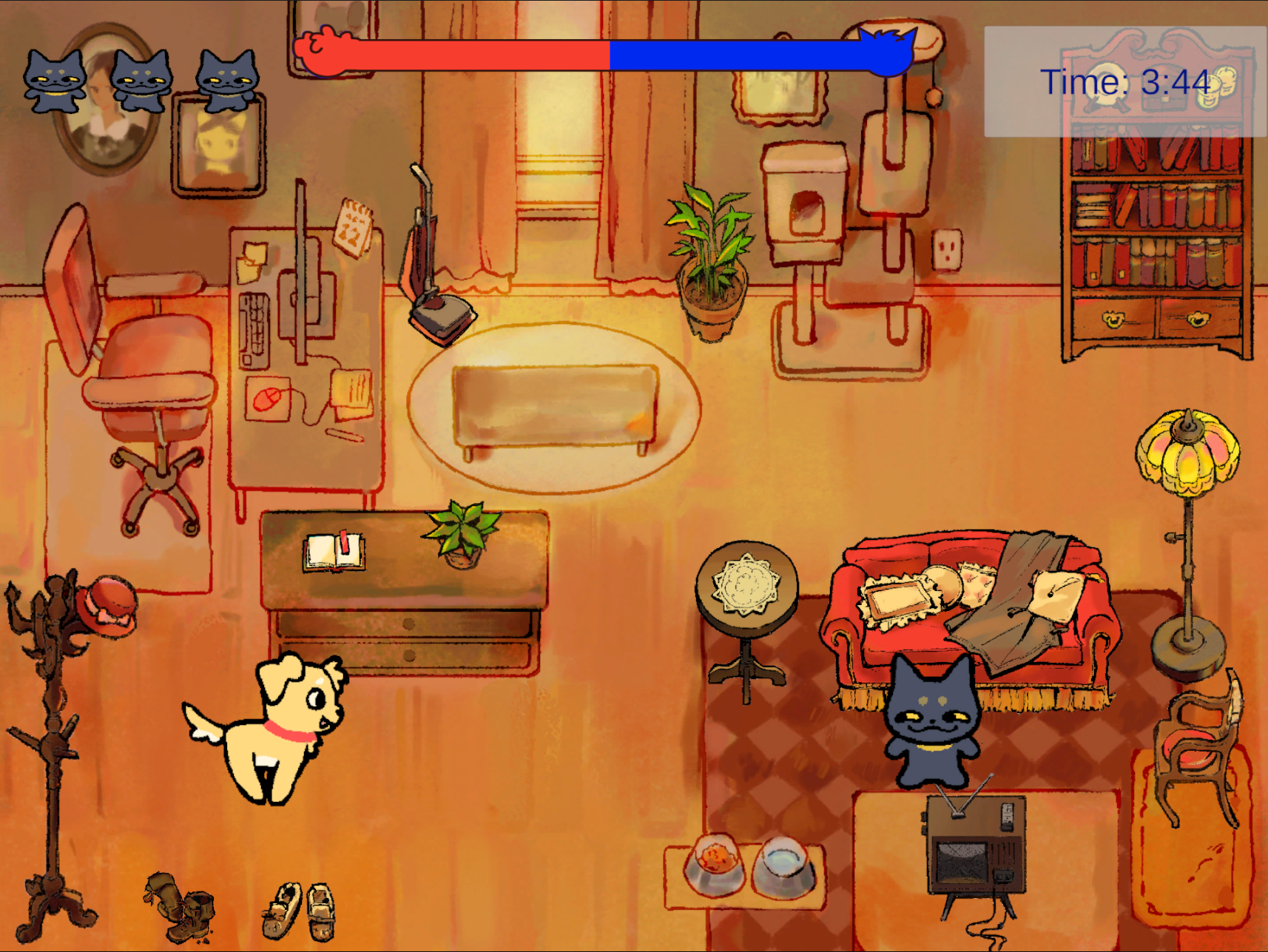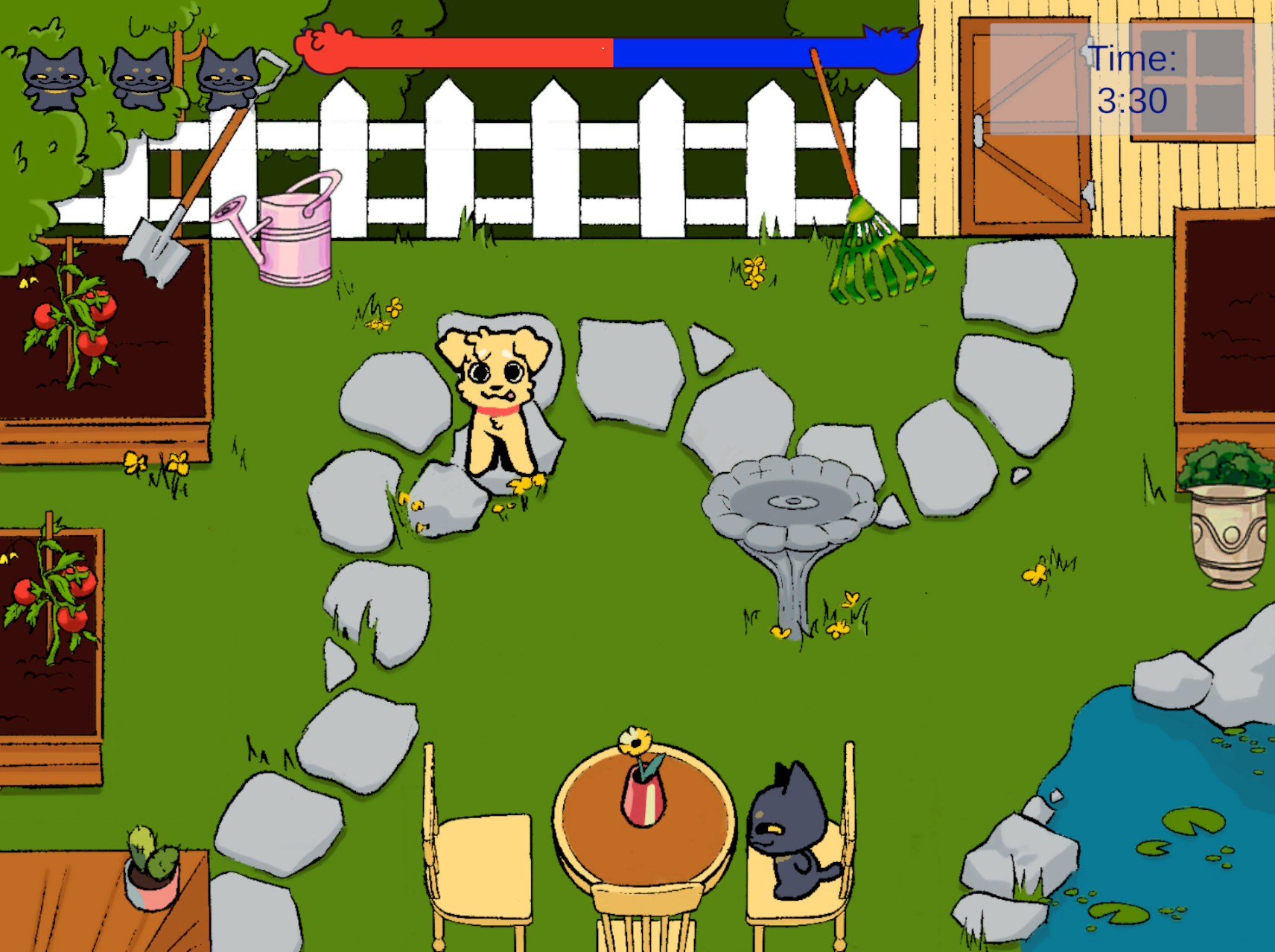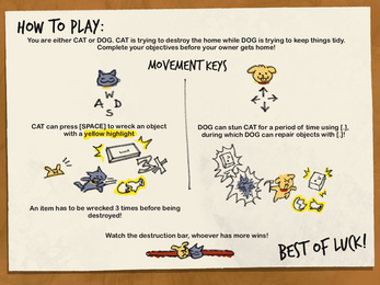 Two player fight-your-friend type game with the cat player trying to destroy the house and the dog trying to protect it.
